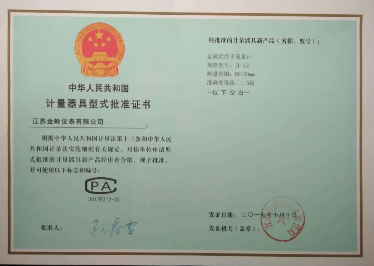 液位計批準證書